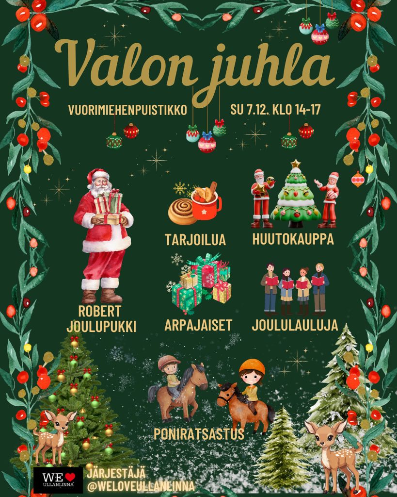Tervetuloa perinteiseen Valon juhlaan sunnuntaina 7.12.2025 Vuorimiehenpuistikkkoon kello 14-17.